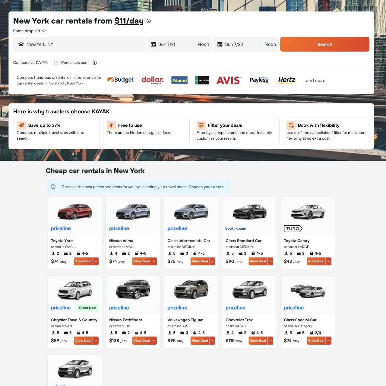 kayak.com的页面设计和内容布局,围绕关键词的全面覆盖,为网站带来了显著的自然流量和点击率。