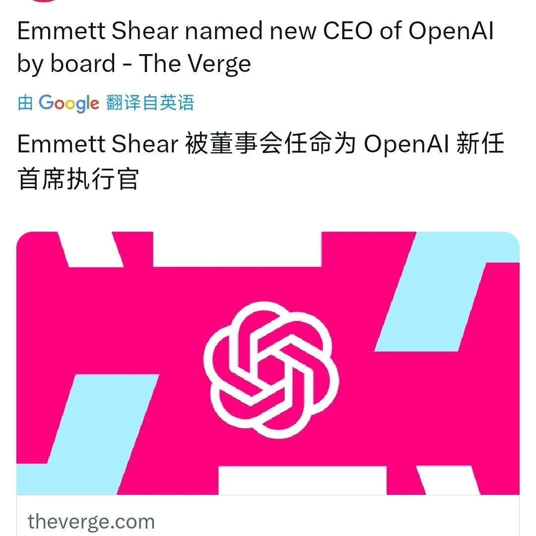 OpenAI 董事会决定聘请 Twitch 创始人 Emmet Shear 担任新 CEO,这是否意味着奥特曼的计划彻底失败?Emmett Shear 的加入能否为 OpenAI 带来新的活力和方向?